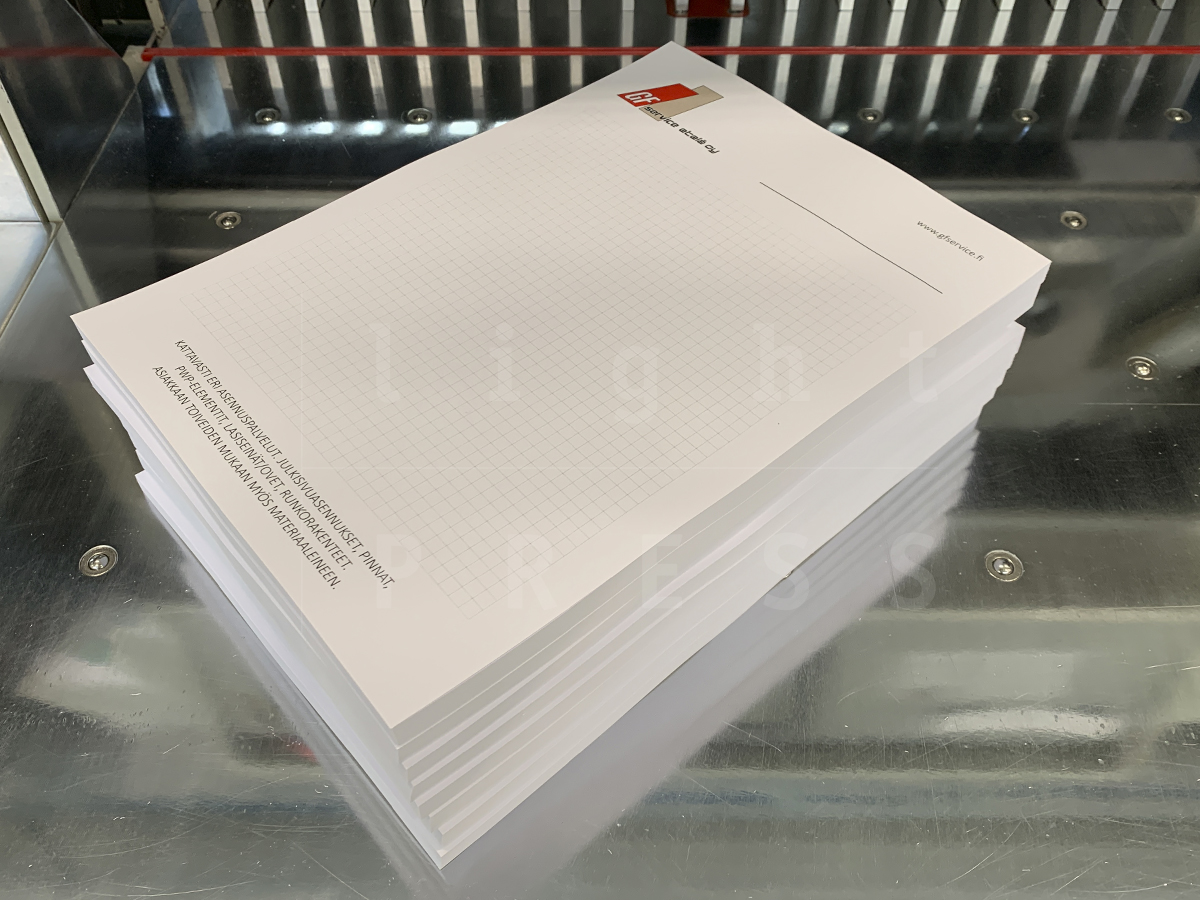 Omalla painatuksella toteutettuna muistilehtiö on näyttävä mainos, joka on helppo jakaa asiakkaalle. Meiltä saat muistilehtiöt sekä pääsylippu- ja kuponkivihot kestävällä liimasidonnalla.