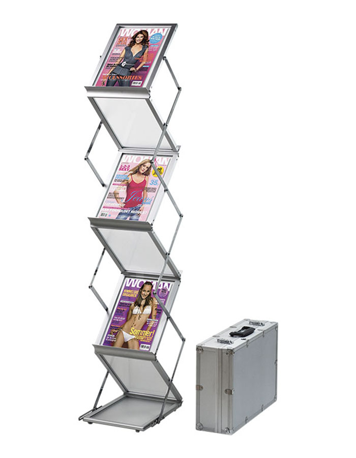 Esitetelineet ja messuhaitarit tekevät materiaaliesittelystä sujuvaa! Tarjoamme lattia- ja pöytämallit sekä kokoon taittuvat telineet. Saatavilla myös massajakotelineet omalla kuvapainatuksella.