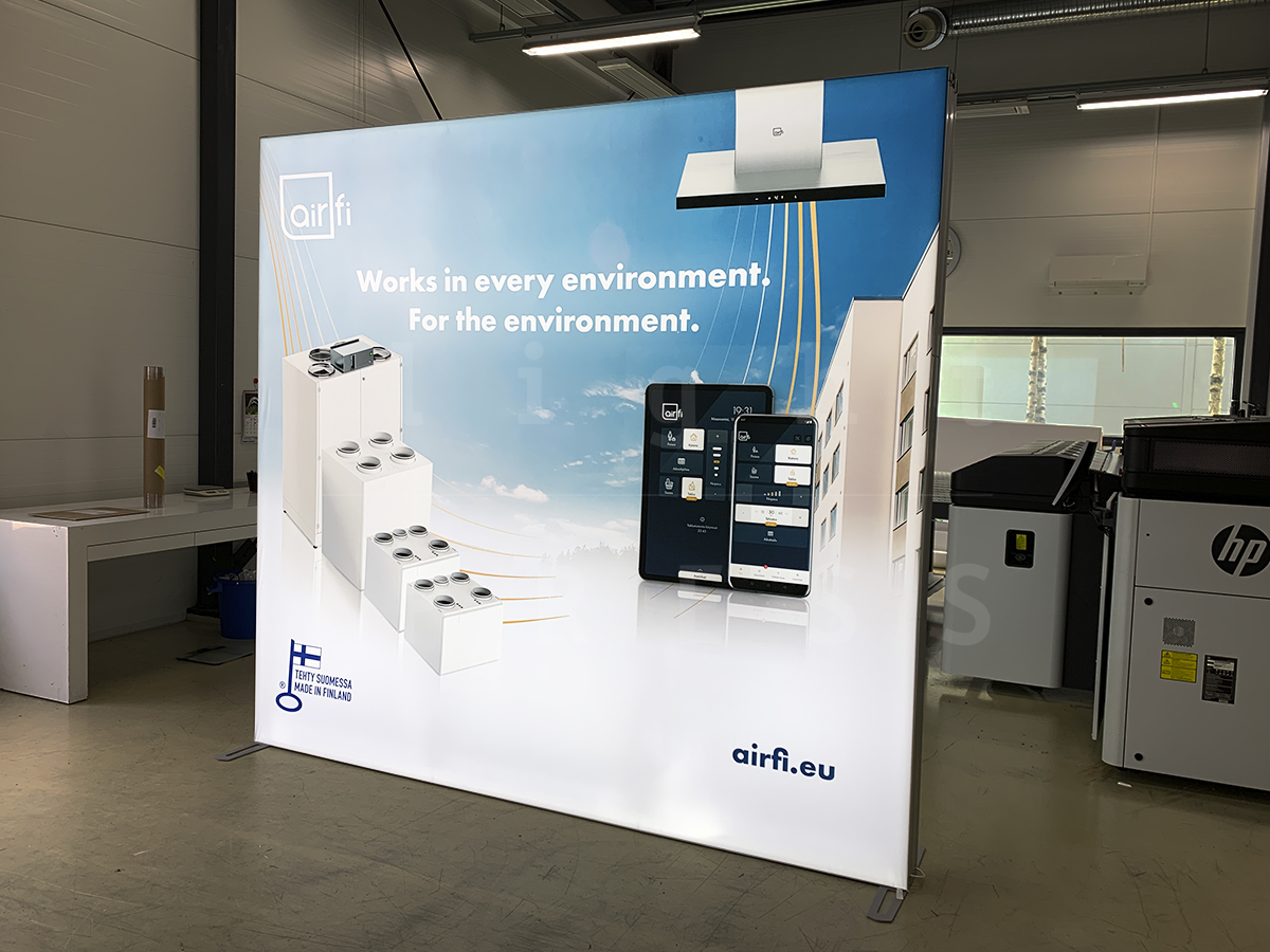 Olipa kyse pienestä tapahtumasta tai suurista messuista, toteutamme korkealaatuiset messutuotteet brändisi mukaan räätälöitynä. Ota yhteyttä!