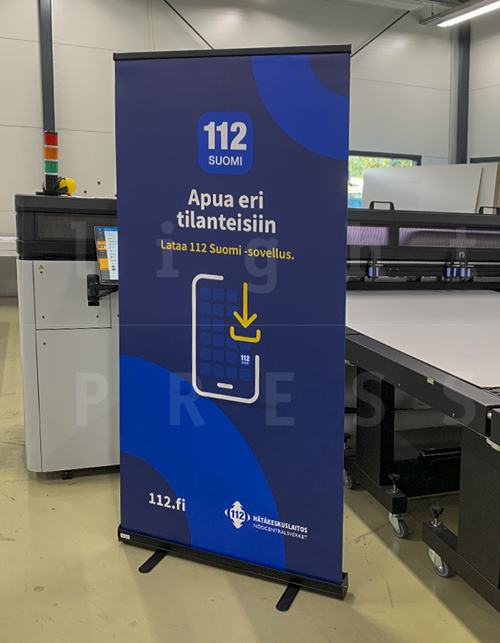 Kevyt ja helposti pystytettävä roll up -teline on tehokas tapa viestiä. Toteutamme roll upit toiveidesi mukaisesti eri kokoisina – saatavilla sekä standardikokoiset että leveämmät telineet.
