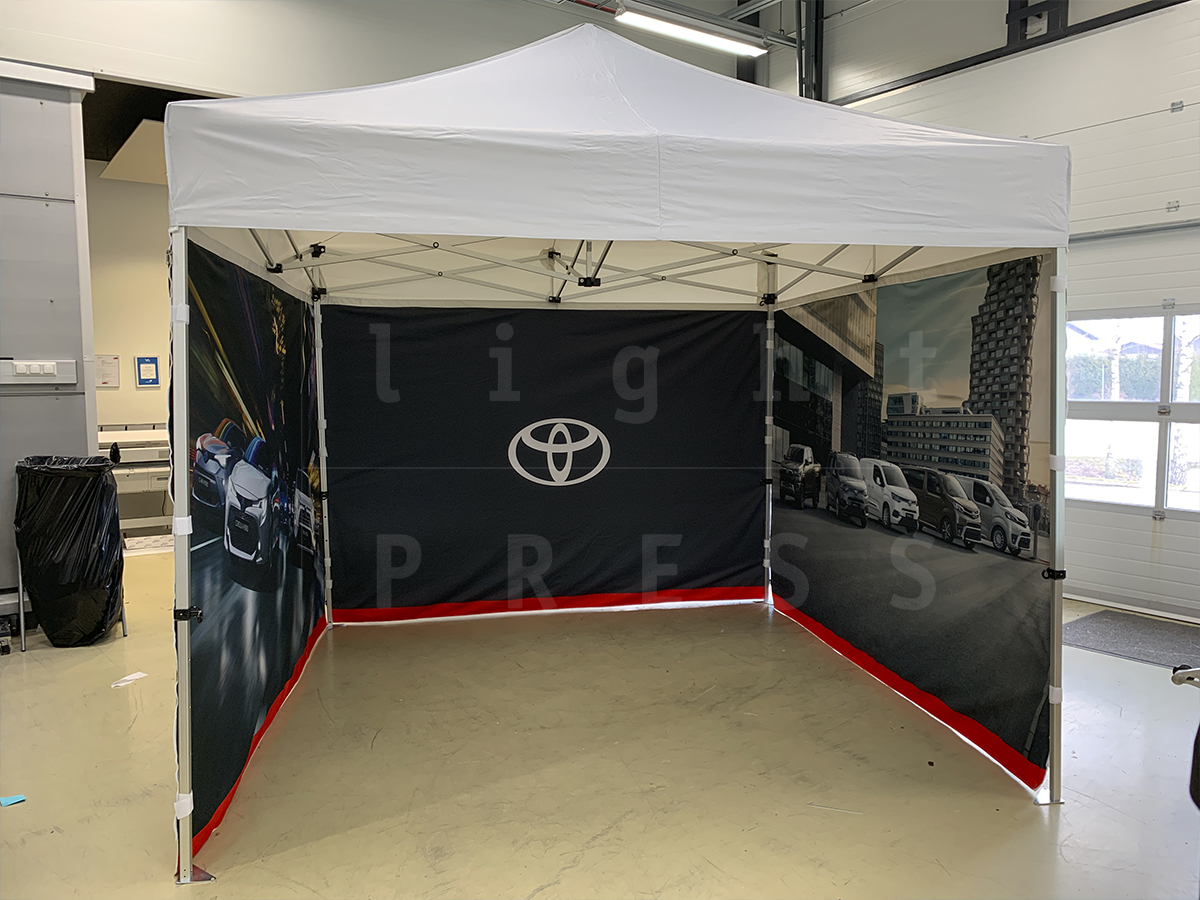 Nopeasti pystytettävä pikateltta tarjoaa suojaa ja toimii tehokkaana mainospintana. Valikoimassamme on useita kokoja, ja kaikki teltat voidaan personoida painatuksella.